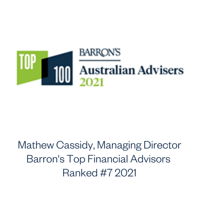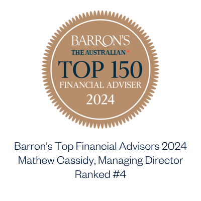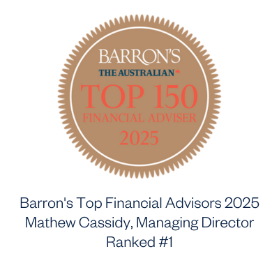 Our Managing Director Mathew Cassidy has been recognized in the Barron’s Top Advisors in Australia for six years running and received the top ranking in 2025, making him Barron's top financial advisor in Australia 2025.